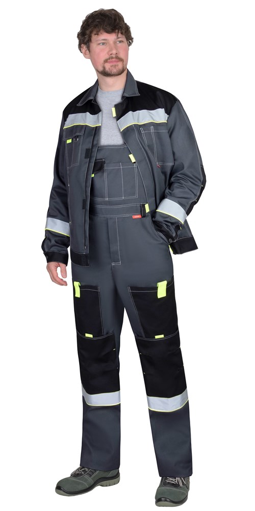 Костюм СИРИУС-ФАВОРИТ куртка, п/к, серый с черным, лимонным кантом и СОП