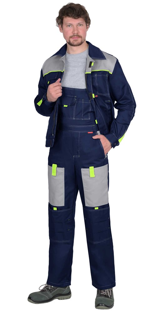 Полукомбинезон, комбинированный с усиленными накладками в области колен, объем по линии талии регулируется тесьмой. Рекомендуется для рабочих специальностей. Современная практичная в эксплуатации и очень экономичная модель летней спецодежды.