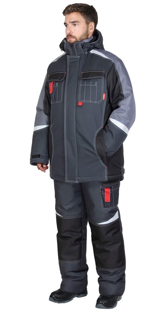 Костюм СИРИУС-ФАВОРИТ-МЕГА-М зимний, куртка дл., п/к, тёмно-серый с черным, средне-серой отд. и СОП