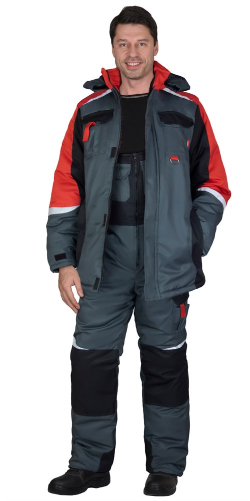 Костюм СИРИУС-ФАВОРИТ-МЕГА-РОСС зимний, куртка дл., п/к, тёмно-серый с красным, чёрным и СОП
