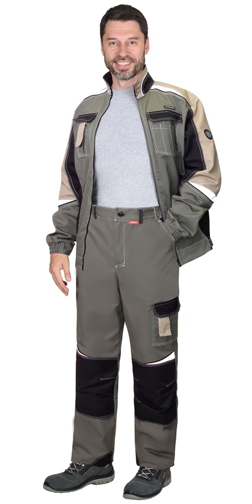 Брюки с застёжкой спереди на молнию (гульфик), с отрезным поясом, застегивается на пуговицу, с боковыми внутренними карманами на передних половинках, с накладными карманами на правой задней половинке и на левом боковом шве, с наколенниками. В брюках предусмотрены светоотражающие элементы, для обозначения сигнальной видимости.