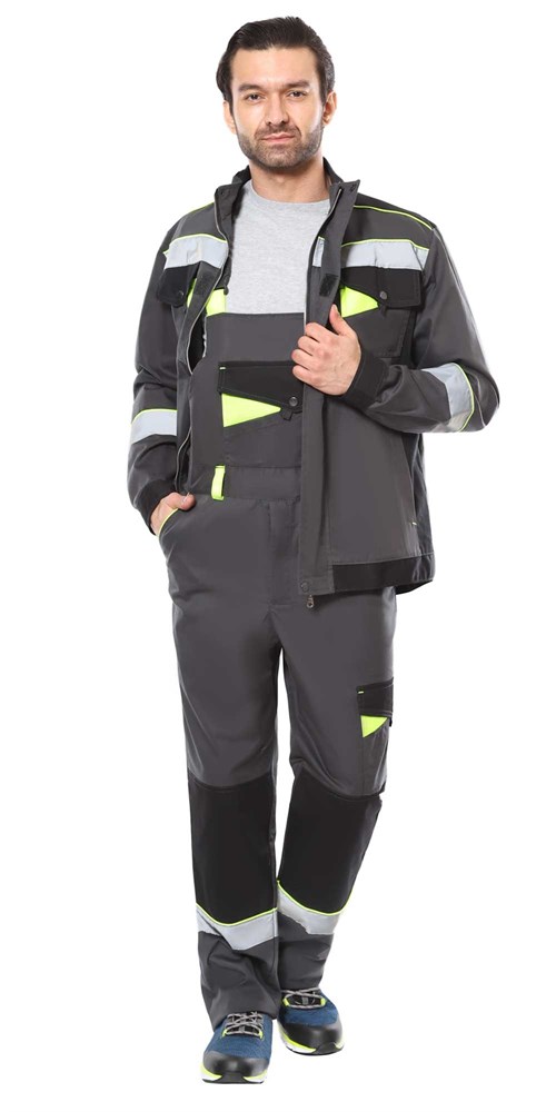 Костюм СИРИУС-ХОВАРД-РОСС куртка и полукомбинезон, т.серый с черным и лимонным кантом, СОП 50мм
