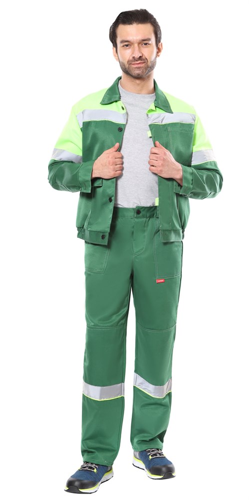 Костюм с лентой СОП для обозначения сигнальной видимости, контрастный кант дополнительно выделяет СОП.