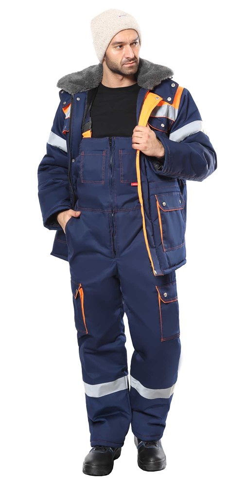 Костюм зимний состоит из удлинённой куртки и полукомбинезона. В костюме предусмотрена светоотражающая лента для обеспечения видимости работающего в тёмное время суток.