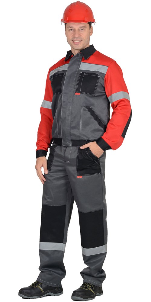 Костюм СИРИУС-ЛИГОР куртка, брюки т.серый с красным и черным и СОП 50мм