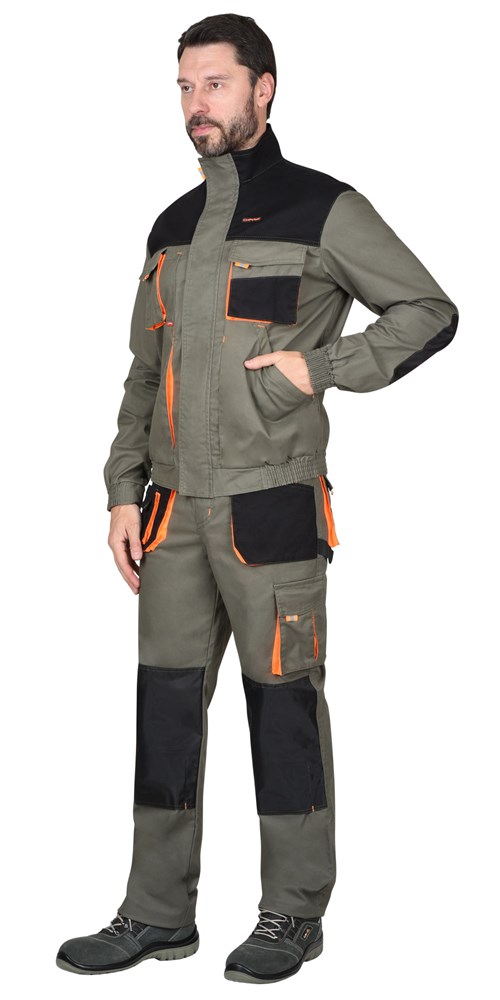 Костюм СИРИУС-МАНХЕТТЕН куртка. брюки оливковый с оранжевым и чер. тк. мех. стрейч пл 260 г/кв.м