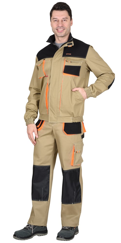 Костюм СИРИУС-МАНХЕТТЕН куртка, брюки песочный с оранж. и черным тк. мех. стрейч пл. 250г/кв.м