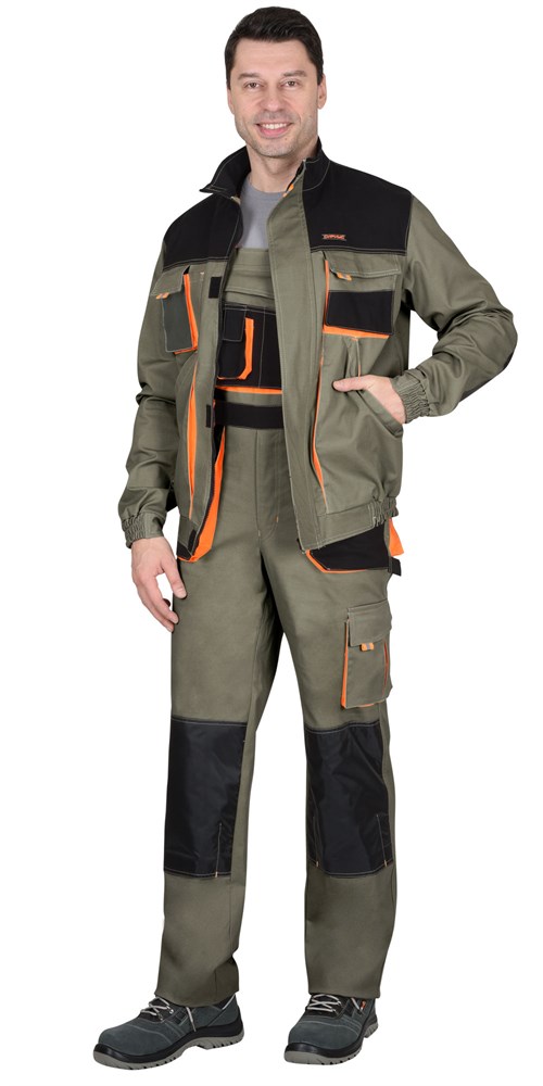 Костюм СИРИУС-МАНХЕТТЕН куртка кор., п/к оливковый с оранжевым и чер. тк. мех. стрейч пл 260 г/кв