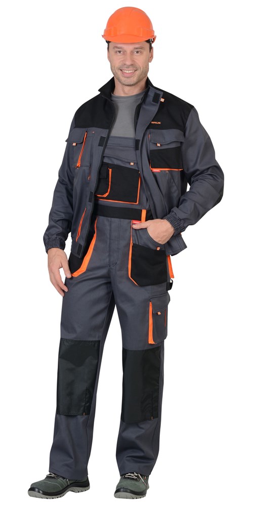 Костюм СИРИУС-МАНХЕТТЕН куртка, п/к т.серый с оранж. и черным тк. стрейч пл. 250 г/кв.м