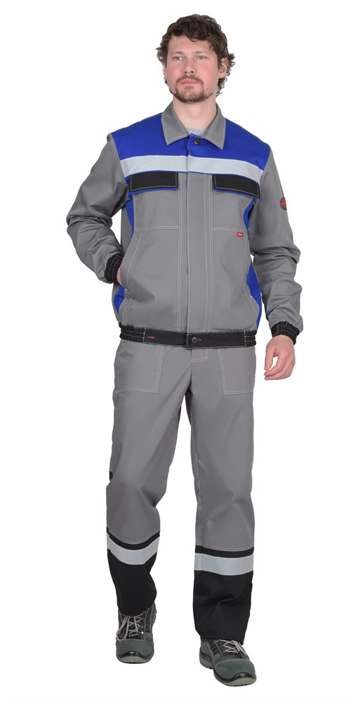 Костюм СИРИУС-МАСТЕР куртка короткая, п/к, средне-серый с васильком с СОП