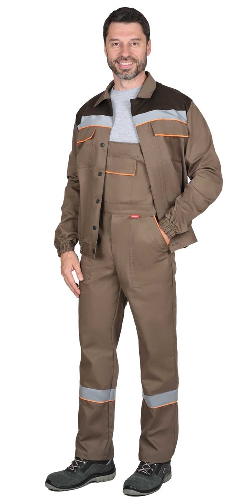 Костюм СИРИУС-МАСТЕР летний: куртка, полукомбинезон, кофейный с тёмно-коричневой отделкой