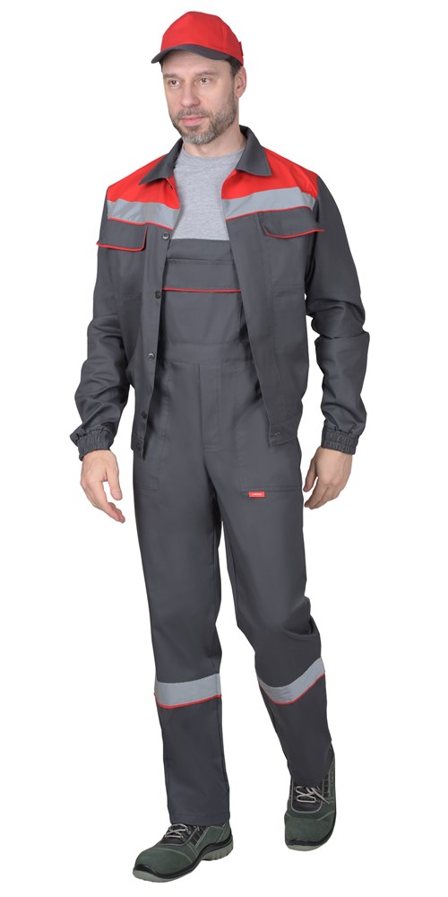 Костюм СИРИУС-МАСТЕР летний: куртка, полукомбинезон, темно-серый с красной отделкой