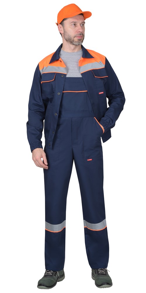 Костюм СИРИУС-МАСТЕР летний: куртка, полукомбинезон, темно-синий с оранжевой отделкой