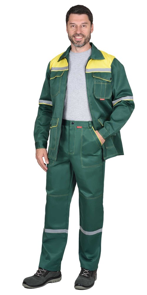 Костюм СИРИУС-МЕХАНИК куртка, брюки зелёный с жёлтым и СОП