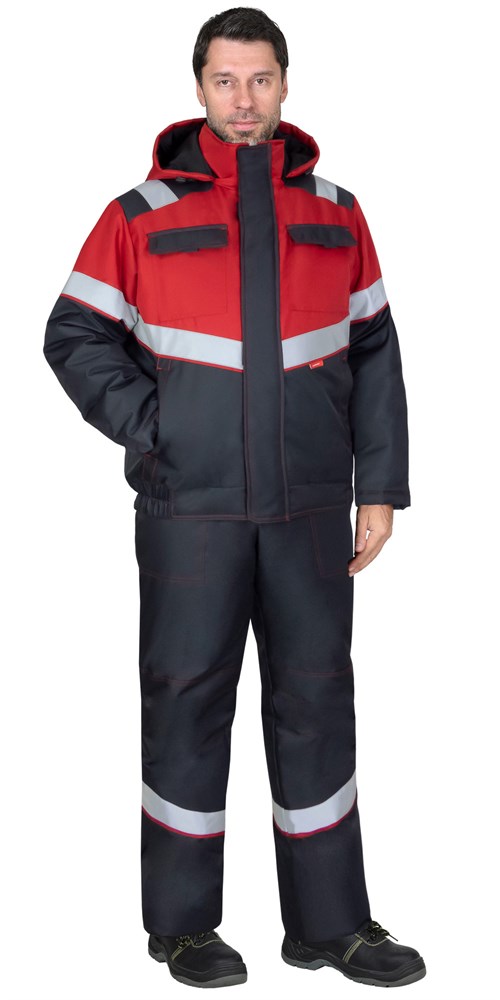 Костюм СИРИУС-НАВИГАТОР-1М зимний, куртка кор., п/к, тёмно-серый с красным и СОП