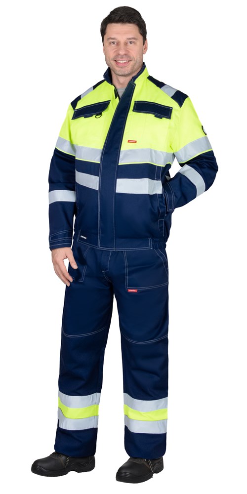 Костюм летний состоит из куртки и брюк, в костюме предусмотрены светоотражающие элементы для сигнальной видимости.