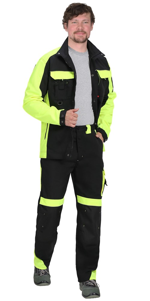 Костюм СИРИУС-ОНИКС куртка, брюки черный с лимонным