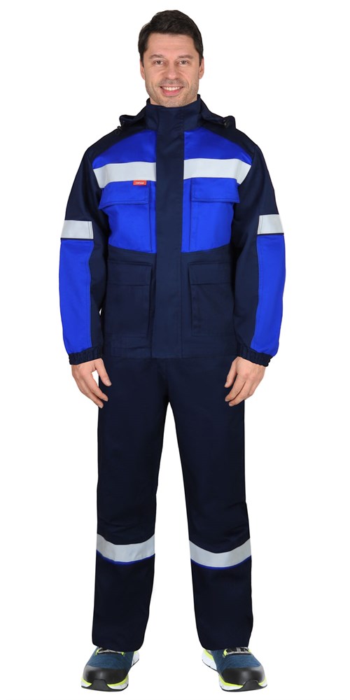 Костюм СИРИУС-ПЕТРОЛ куртка, п/к, темно-синий с васильковым и СОП, антистат 260 г/кв., ОП, НМВО