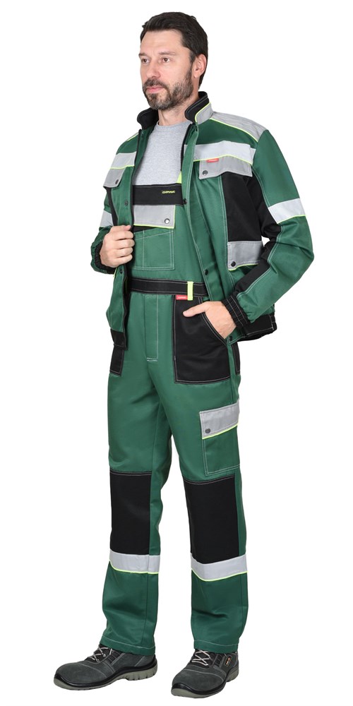 Костюм СИРИУС-ПОЛИНОМ муж., кур. кор., п/к. зеленый с черным и св.серым и СОП 50мм