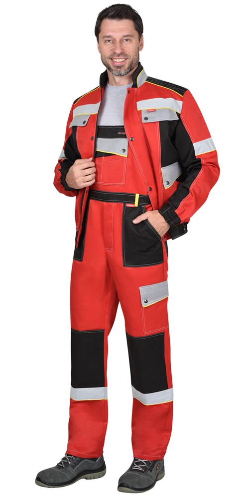 Костюм СИРИУС-ПОЛИНОМ муж.,курт.кор. п/к, черный с красным и св.серым СОП 50мм
