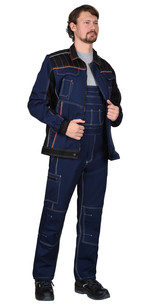 Костюм СИРИУС-ПРЕСТИЖ куртка, п/к, синий с черным и оранжевой отделкой