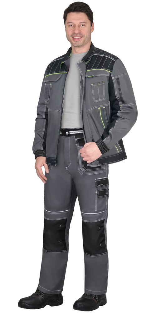 Костюм СИРИУС-ПРЕСТИЖ-Л куртка, брюки, темно-серый с черным и лимонным кантом