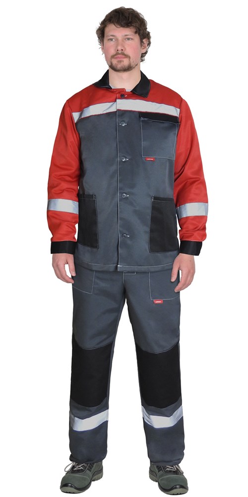 Костюм СИРИУС-ПРОФИЛЬ куртка, брюки, темно-серый с красным с черной отделкой и СОП