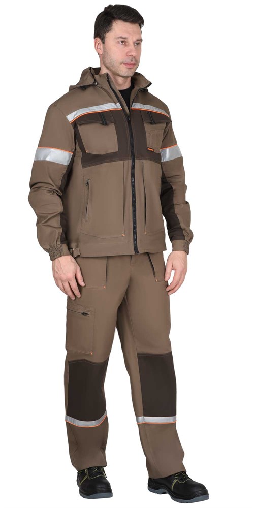 Костюм СИРИУС-РОДОС куртка, брюки, светло-коричневый с темно-коричневым