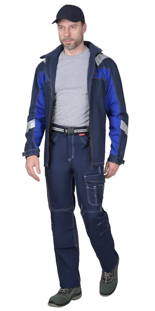 Брюки прямые, на притачном поясе, с застёжкой спереди на молния, с боковыми внутренними карманами, с часовым карманом; на задних половинках с отрезной кокеткой, двумя накладными карманами и карманами под инструменты. В брюках предусмотрен СВ кант для обозначения сигнальной видимости.