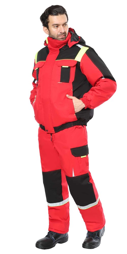 Костюм зимний состоит из куртки и полукомбинезона. В костюме предусмотрены светоотражающие детали для обеспечения видимости работающего в тёмное время суток.