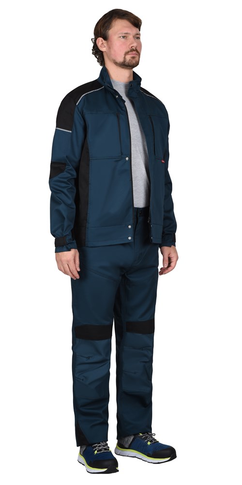 Куртка двухцветная, прямого силуэта, укороченная, с воротником стойка, с центральной застёжкой на молнию от края воротника до низа, накрытую ветрозащитной планкой и внутренней короткой планкой по правому борту, с нагрудными карманами с молнией, с нижними карманами в шве. Рукава втачные, объём по низу рукава регулируется хлястиком с текстильной застёжкой «липучка». В куртке предусмотрен СВ кант.