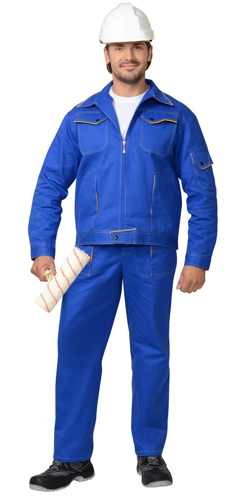 Куртка укороченная, с застёжкой на "молнию". Клапаны карманов и манжеты с кнопками. Брюки с наколенниками. ГОСТ 12.4.280-2014