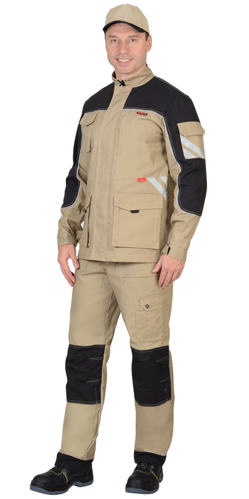 Костюм СИРИУС-ВЕСТ-ВОРК куртка, брюки песочный с черным пл. 275 г/кв.м