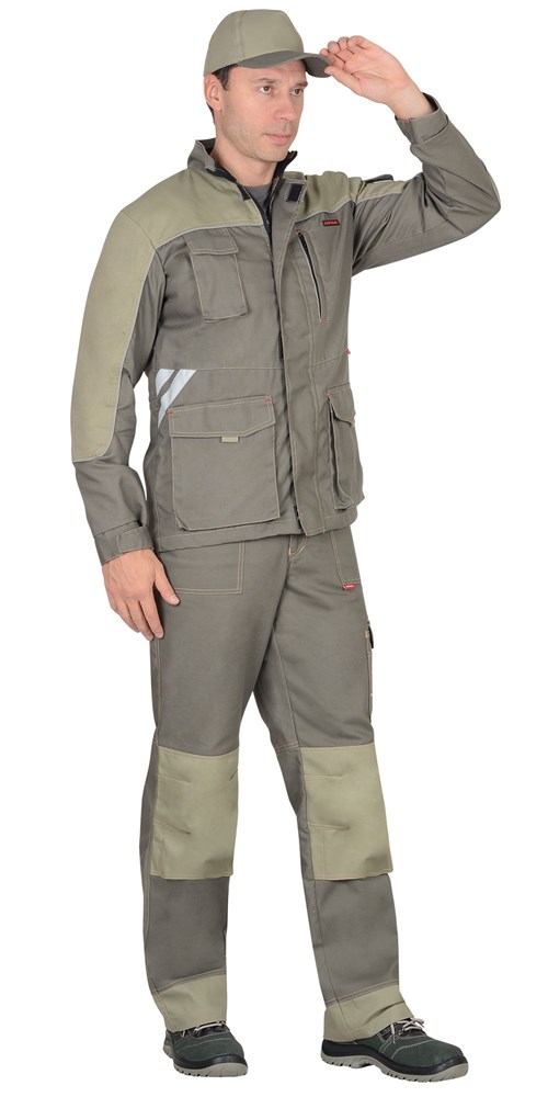Костюм СИРИУС-ВЕСТ-ВОРК куртка дл., брюки т.оливковый со св.оливковым пл. 275 г/кв.м