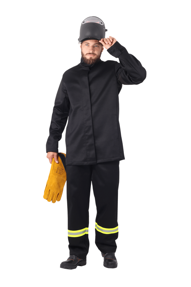 В костюме используются огнестойкая световозвращающая полоса 50 мм и огнестойкие нитки