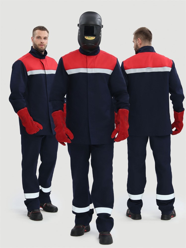 Костюм сварщика Велд-СОП 1 кл.защиты (тк.Хлопок-ОП,350) брюки, т.синий/красный