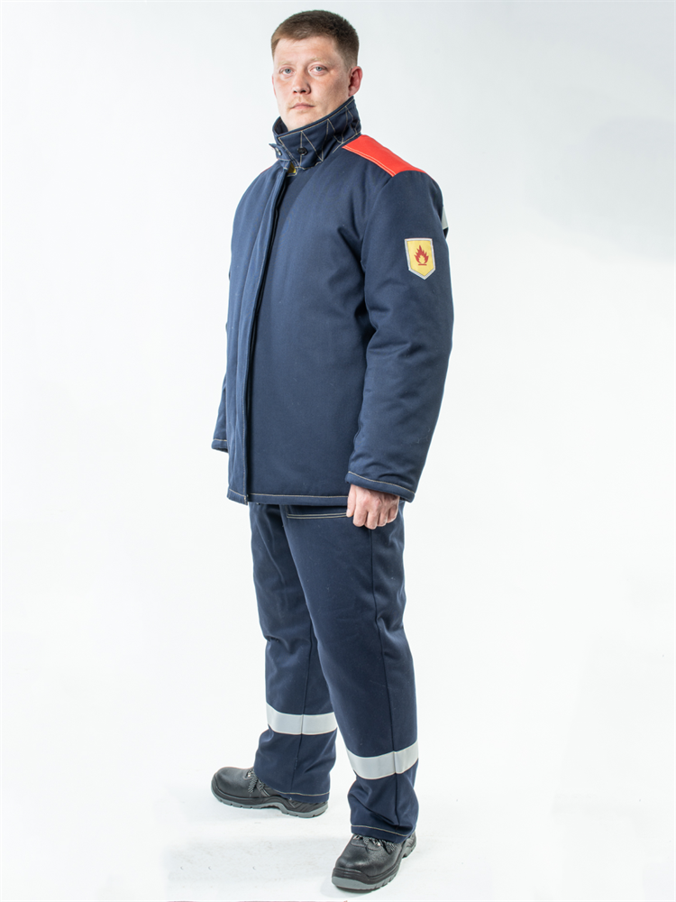 Внешние швы прошиты высокопрочной термостойкой арамидной нитью контрастного цвета, пуговицы термостойкие аминопластовые, огнестойкая СВЛ лента.