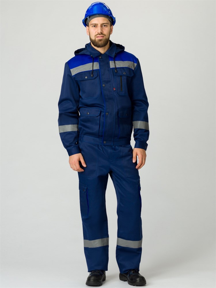 Рабочий костюм мужской «Титан-1 СОП с капюшоном» состоит из двух элементов: мужская рабочая куртка + брюки рабочие. Спецодежда мужская оснащена широкими светоотражающими полосами 50 мм, благодаря чему подходит для работы в местах с плохим освещением. Костюм изготовлен в соответствии с ГОСТ из плотного материала с водоотталкивающей пропиткой. Укороченная куртка рабочая на молнии удобна в работе и отличается длительным периодом эксплуатации. Защиту от осадков и ветра обеспечивают съемный капюшон с регулировкой по лицу и ветрозащитная планка, застегивающаяся на кнопки. Рабочие брюки отлично садятся по фигуре. Униформа дополняется удобными объемными карманами с клапанами на кнопках, что помогает сохранять в целости записи и расходники.
