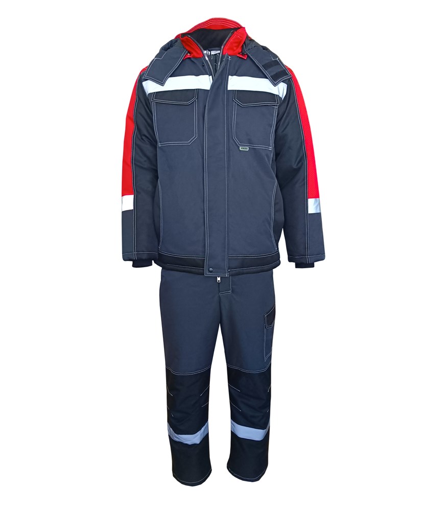 Костюм утеплённый ЮКОН-Мембрана куртка, полукомбинезон цв. т.серый, чёрный, красный