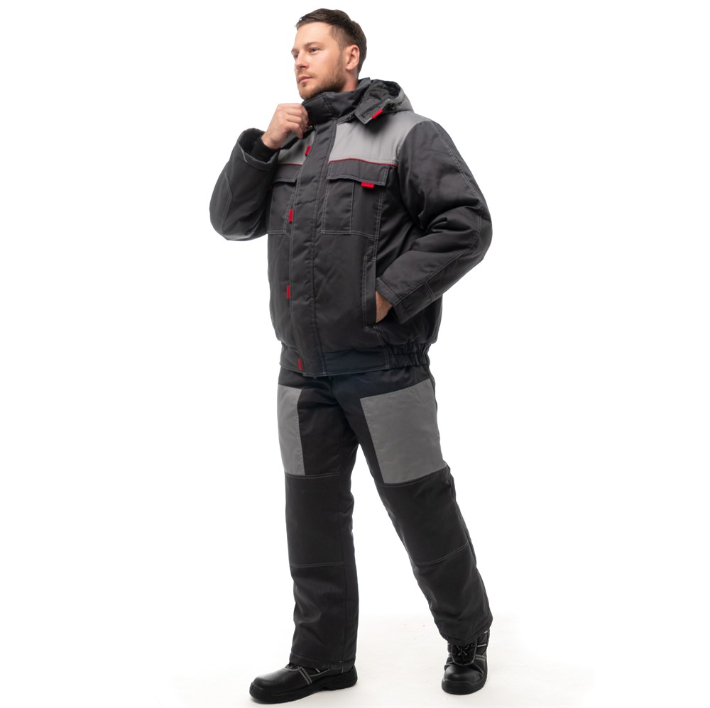 Костюм утеплённый мужской «ФАВОРИТ-2» куртка, полукомбинезон тк. ТВИЛ цв. т/серый со св/серым и красным