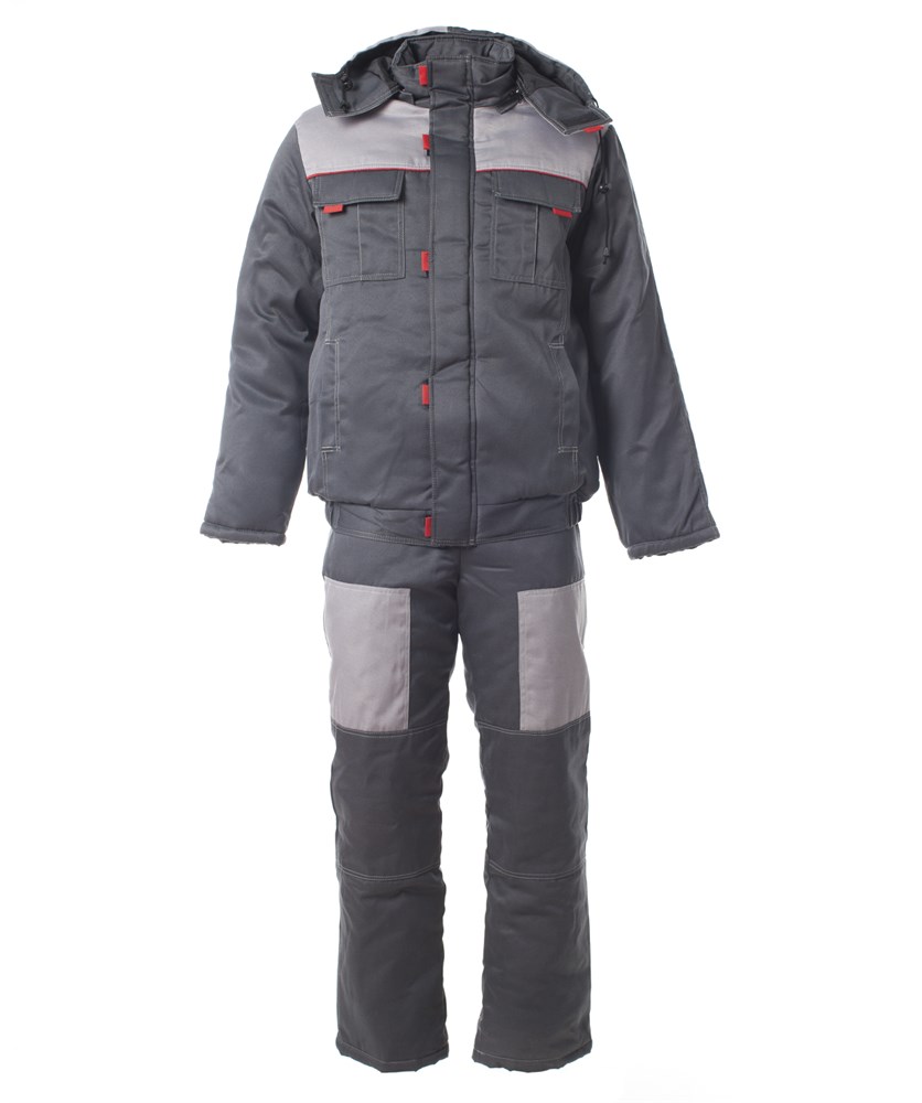 Костюм утеплённый мужской «ФАВОРИТ-2» куртка, полукомбинезон цв. т/серый со св/серым и красным