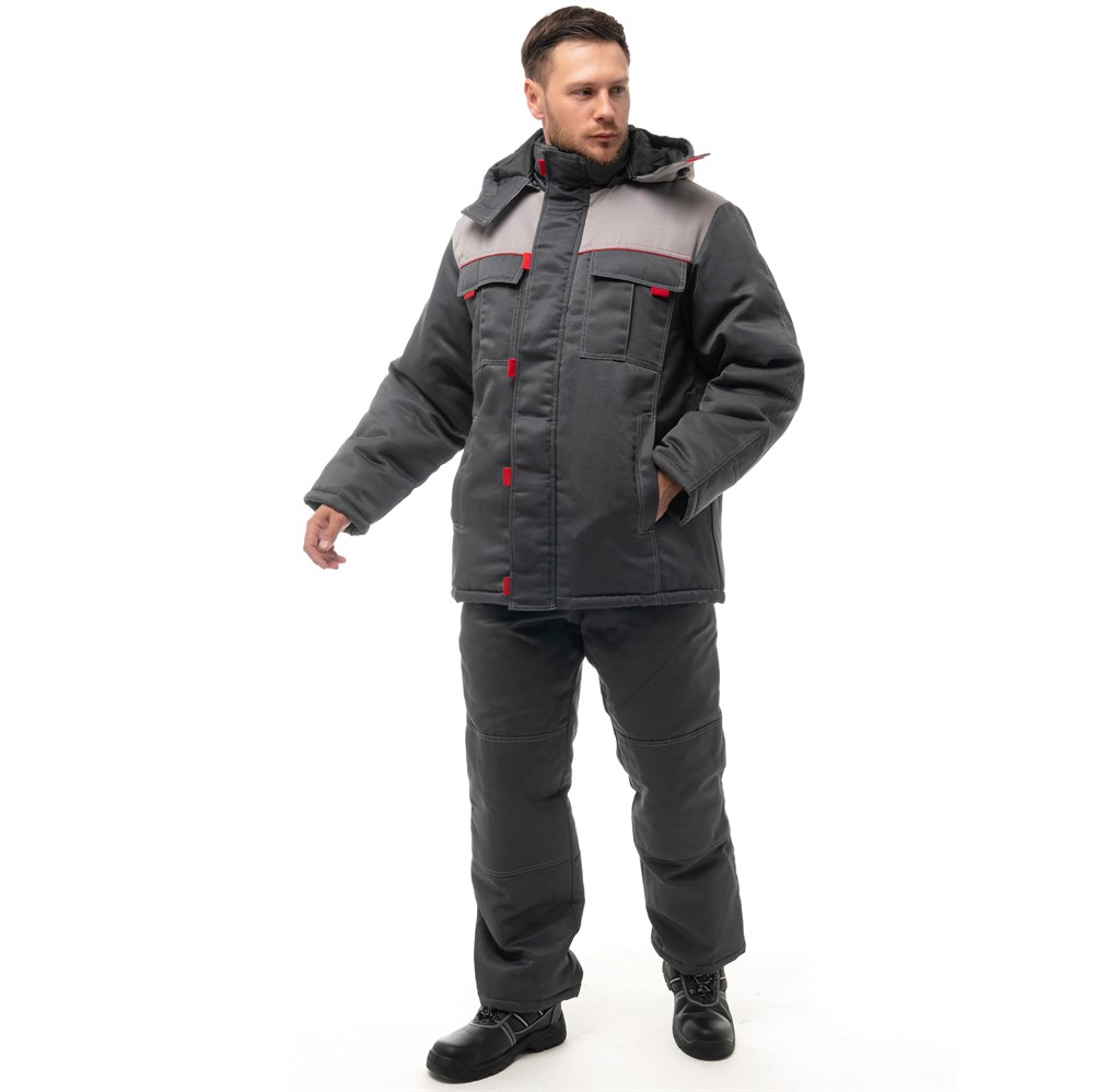 Костюм утеплённый мужской «ФАВОРИТ» куртка, брюки цв. т/серый со св/серым и красным