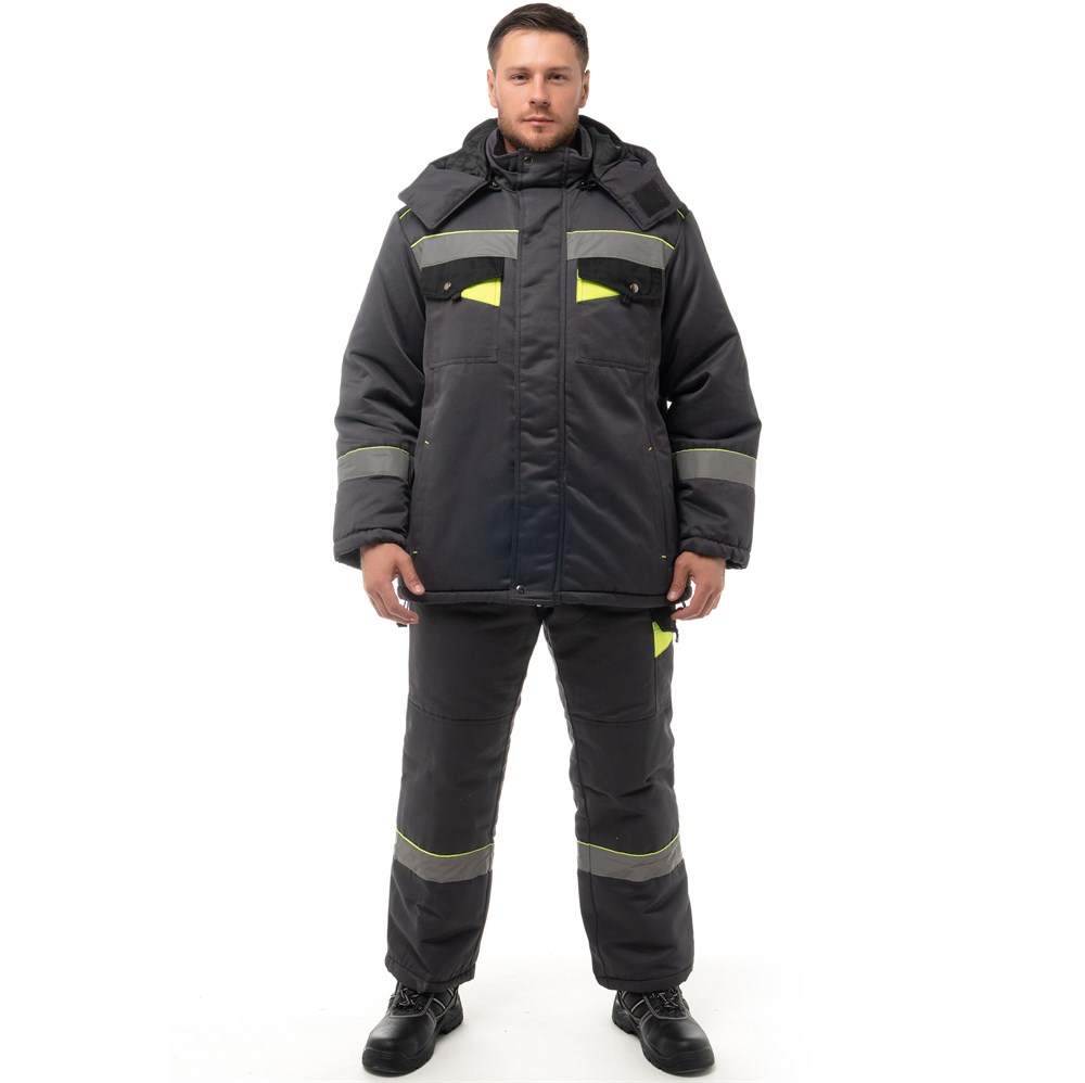 Костюм утеплённый мужской «КОРВЕТ» с СОП куртка, брюки цв. т.серый с чёрным и лимон