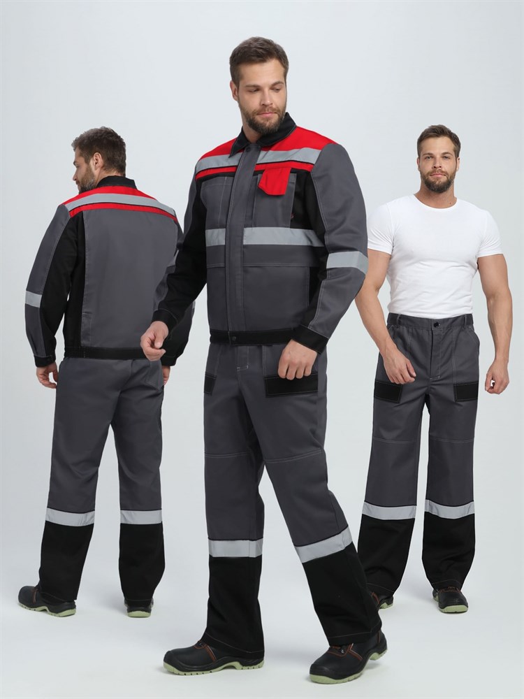 Костюм Виват-1 Премиум IMP (тк.Смесовая, 240) брюки, т.серый/черный/красный