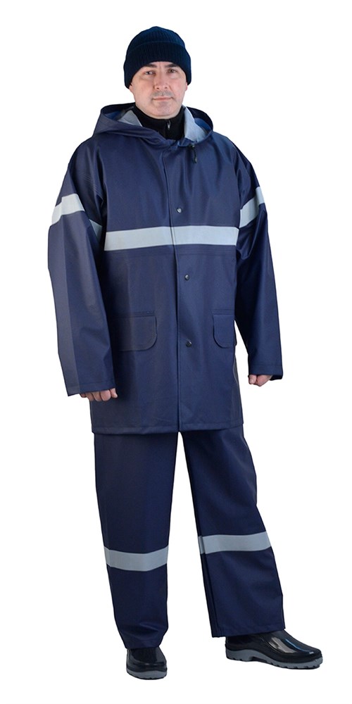 Костюм из прочного, но при этом мягкого и эластичного материала на трикотажной основе с покрытием ПВХ плотностью 280г и толщиной 0.33мм, с герметичными сварными швами.