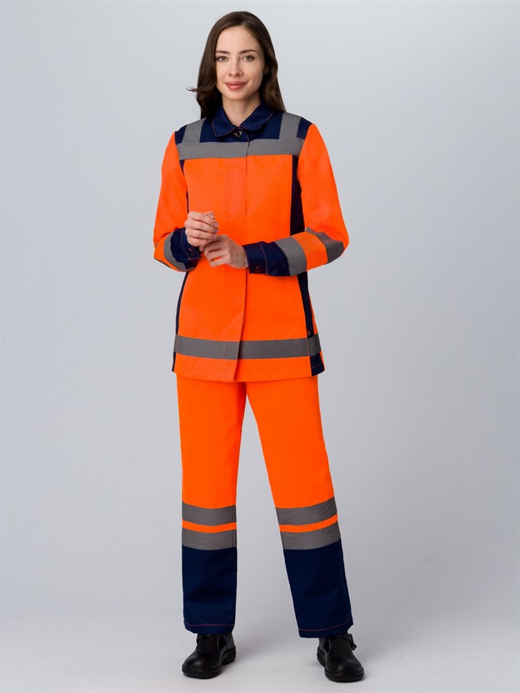 Костюм женский для дорожник (тк.Смесовая,210) п/к, оранжевый/т.синий