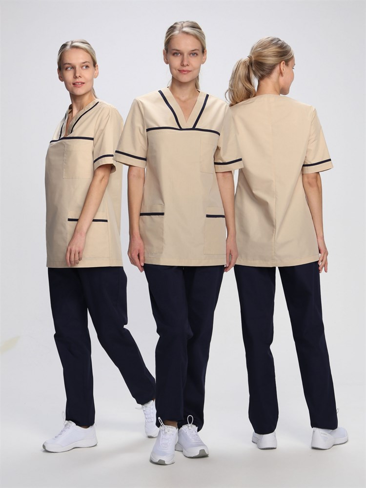 Стильный женский медицинский костюм «Ирис» разработан для сотрудниц медицинских учреждений, салонов красоты, массажных кабинетов или стоматологий. Костюм медицинский женский состоит из двух предметов: блузка + брюки женские. Спецодежда изготовлена в соответствии с ГОСТ, надежно защищает от общих производственных загрязнений. Костюм выполнен в нежных пудровых оттенках, замечательно сидит по фигуре. Прямая удлиненная блуза не стесняет движения, комфортна в работе. Для хранения мелочей предусмотрены вместительные карманы: боковые и нагрудный. Декоративный кант на карманах, горловине и кокетке придает костюму изысканный внешний вид. Рабочие брюки оснащены поясом из эластичной тесьмы для комфортной работы в течение длительного периода времени. Костюм изготовлен из легкой дышащей ткани, которая не выцветает и не садится после многократных стирок.
