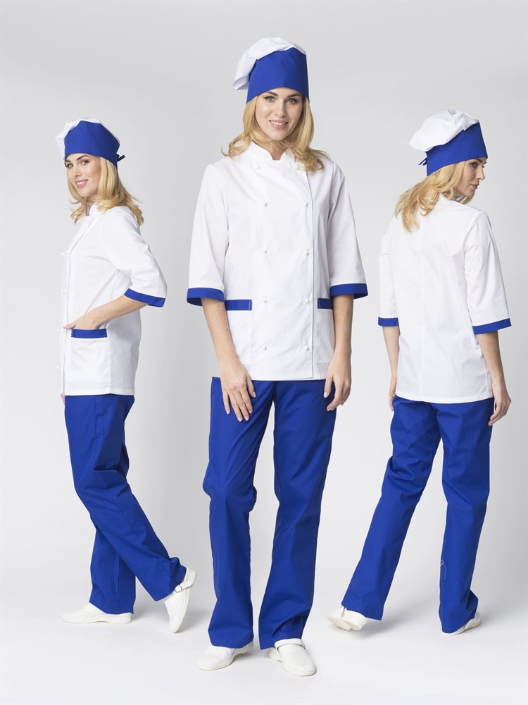 Костюм женский повара Гастроном (тк.ТиСи), белый/васильковый