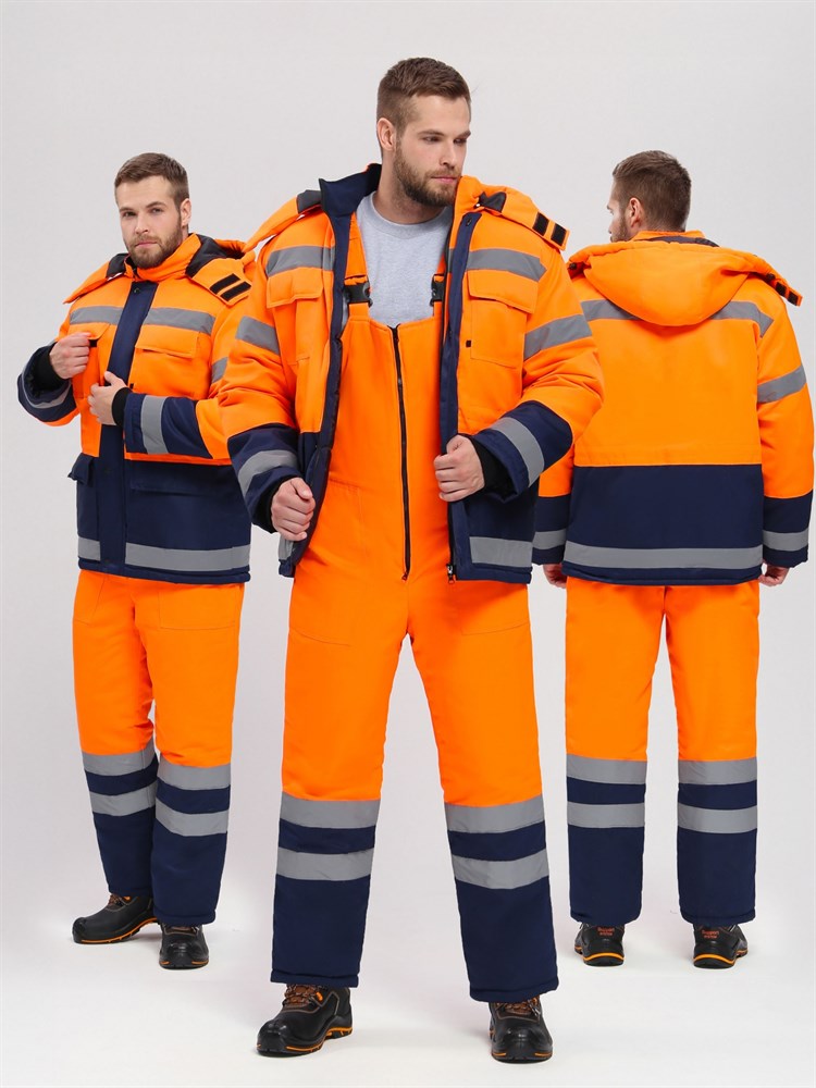 Костюм зимний для дорожника Ультра (тк.Смесовая,210) п/к, оранжевый/т.синий