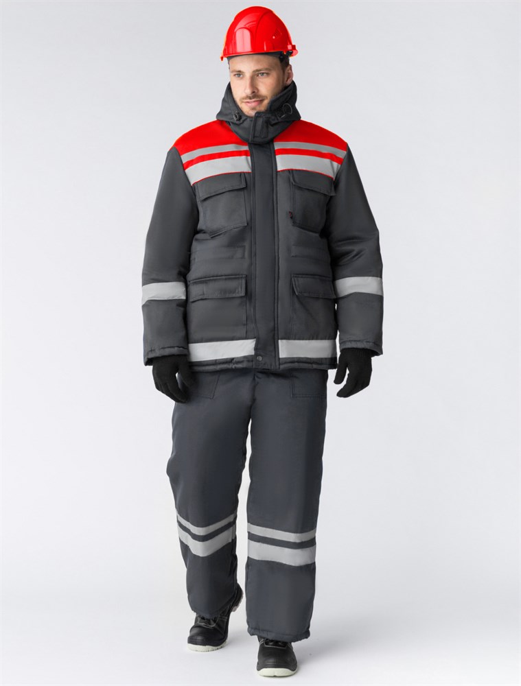 Костюм зимний Горизонт-Люкс (тк.Смесовая,210) брюки, т.серый/красный